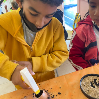 A turminha do 7B e do 7F encontraram no jardim da escola marimbondo, tatuzinho e plantaram alpiste na casca de ovo do projeto “Flor do nosso Jardim.” Vamos espiar?