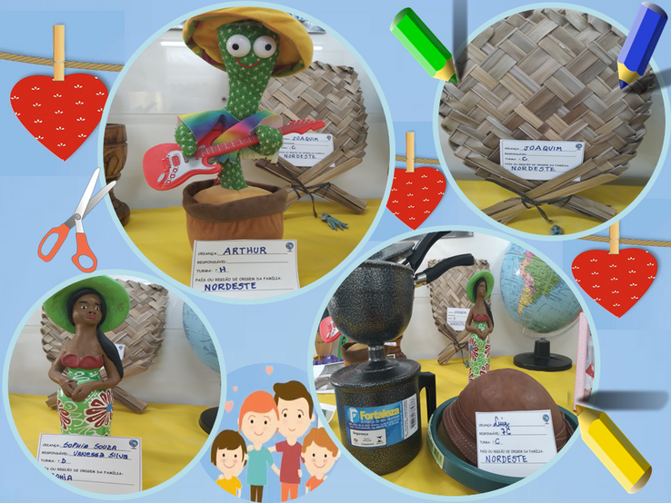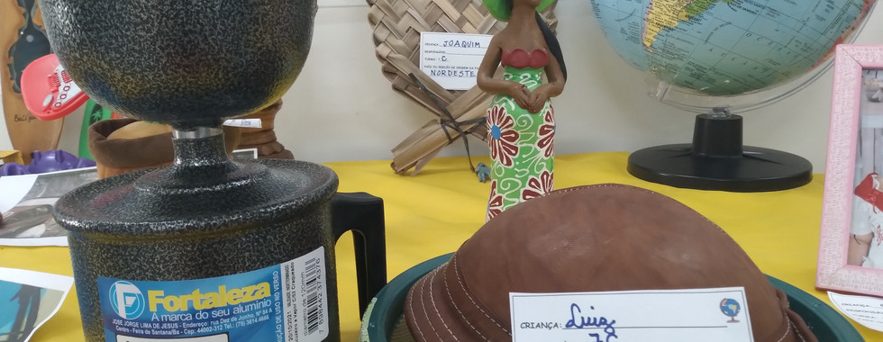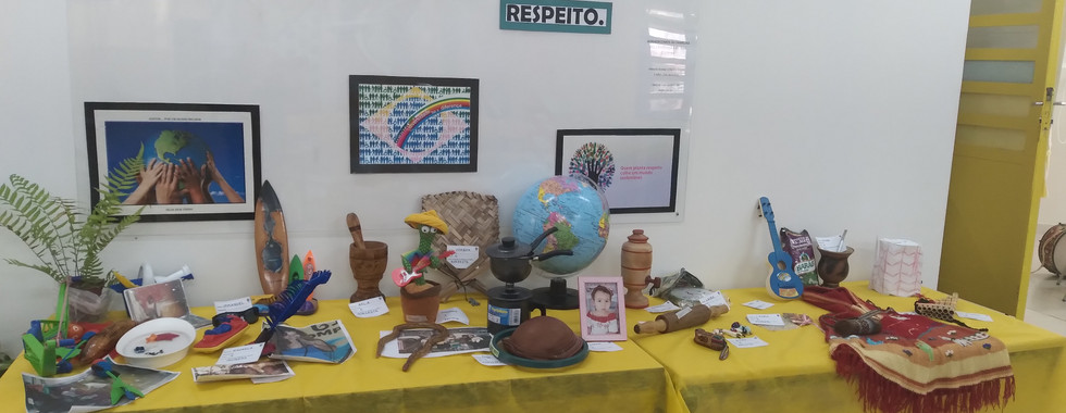 Teve exposição de atividades realizadas pelos alunos em sala de aula e uma exposição cultural, com elementos de cada cultura familiar favorecendo a diversidade cultural.